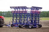 - With an 11 m grab width, the cultivator frame is made of 5 sections interconnected by swivel joints for better soil contour following.