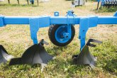 Equipped with fins which perform the function of a coulter and put the soil layer to the bottom of the furrow.